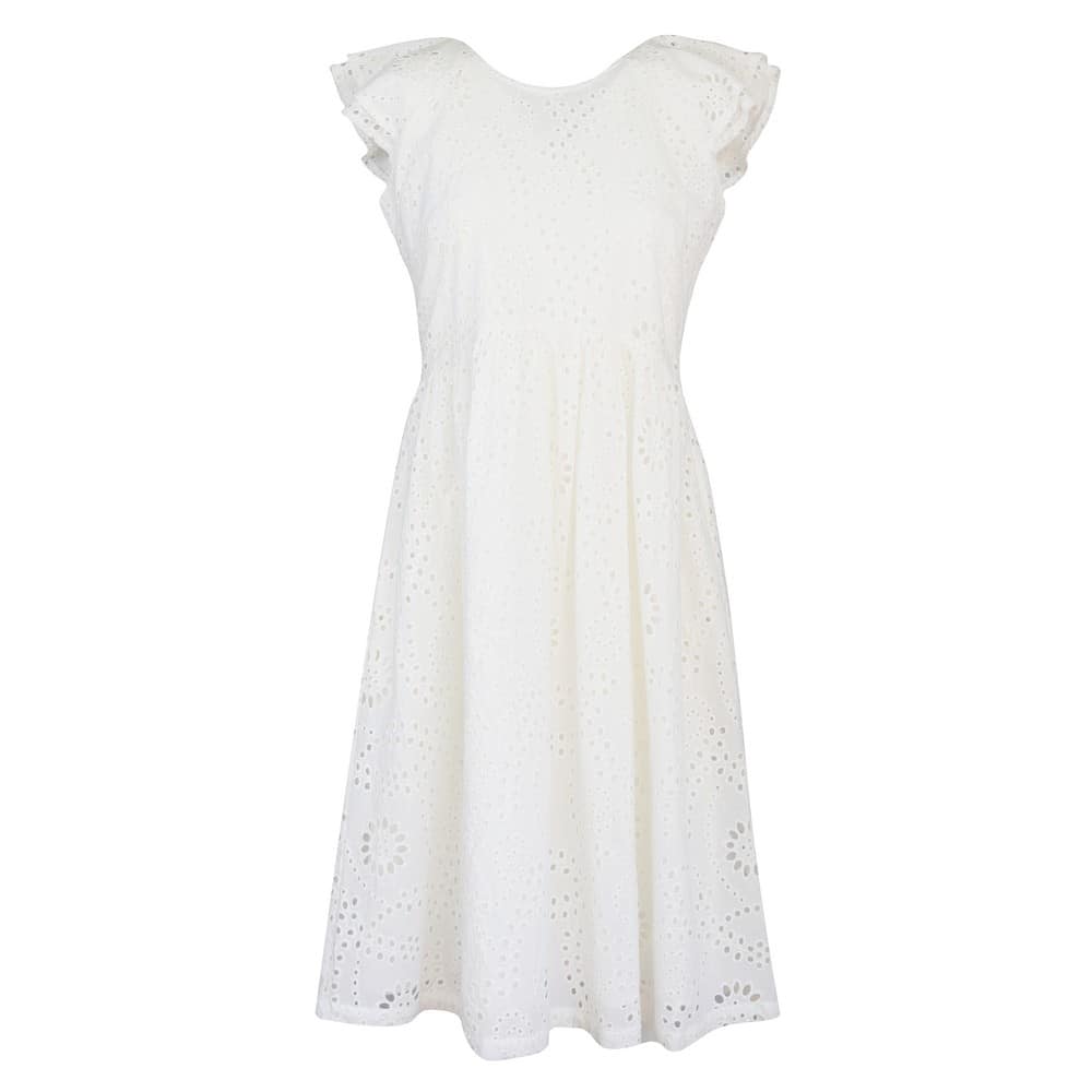 Wit broderie kleedje van Princess goes Hollywood. Deze jurk is gevoerd, heeft een verhoogde taille, valt op de knie en heeft een normale pasvorm. De jurk sluit aan de achterzijde met een verborgen ritssluiting en een haakje.