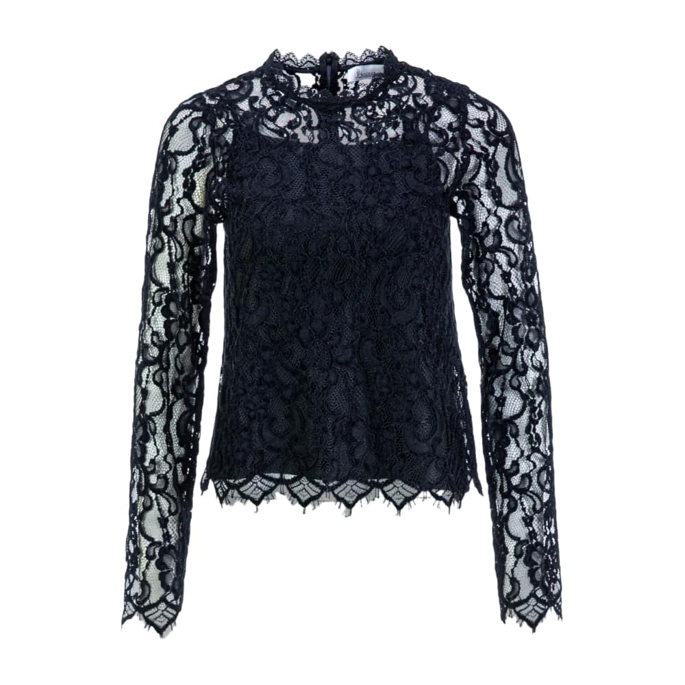 Kanten shirt van Princess goes Hollywood, model crocket lace blouse in nero. Deze zwarte blouse heeft een losse, zwarte ondertop en heeft een all-over kanten bovenlaag. Het shirt heeft een normale pasvorm, lange mouwen en sluit met een verborgen ritssluiting aan de achterzijde.