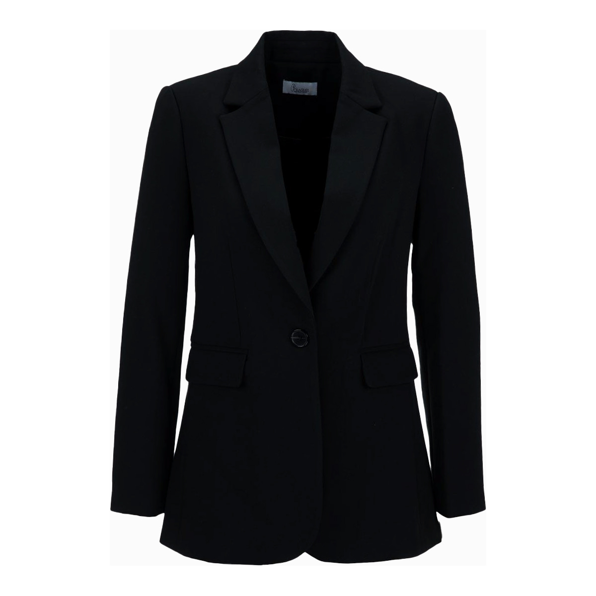 Zwarte blazer van Princess goes Hollywood. Deze lange blazer sluit met een knoop aan de voorzijde en heeft twee steekzakken. De blazer is gemaakt van een soepele zwarte stof en heeft een getailleerde pasvorm.