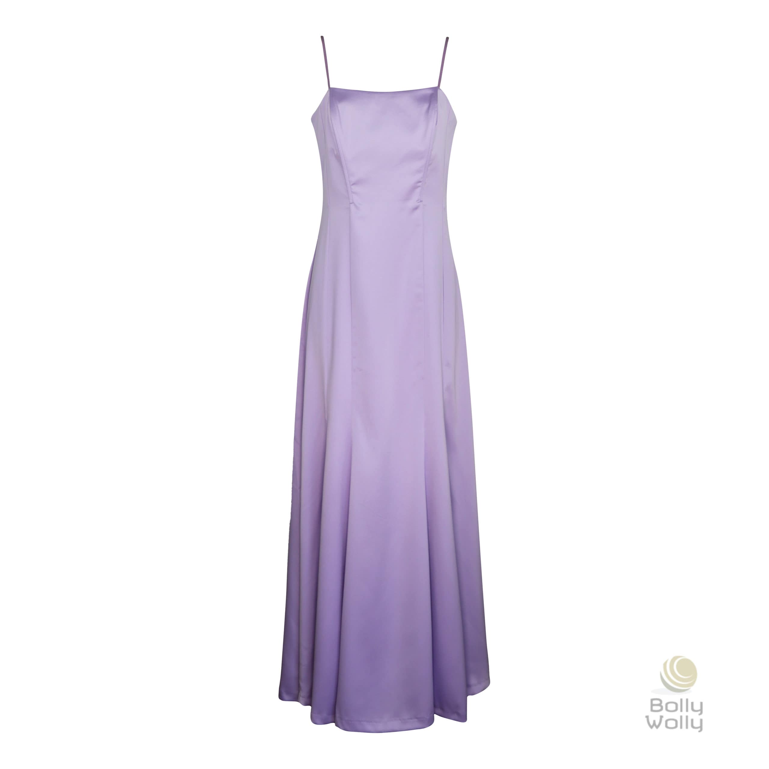 Lang kleedje van Rinascimento. Deze maxi jurk is gemaakt van een effen satijnen stof in lila en heeft een verborgen ritssluiting aan de achterzijde. De avondjurk heeft aan de voorzijde in de body ondersteunende strips lopen, zodat de body altijd mooi vormt. De spaghettibandjes zijn verstelbaar.