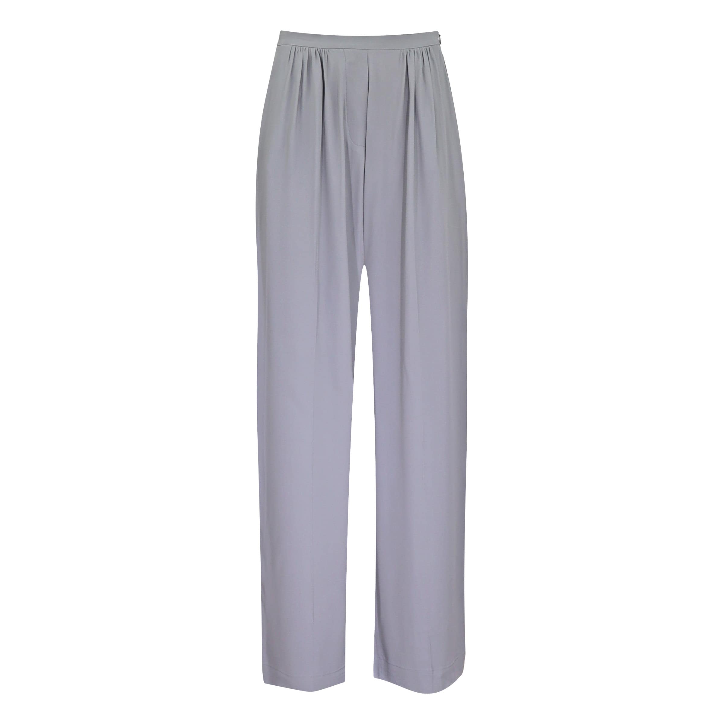 Wijde pantalon van Semicouture. Deze pantalon is gemaakt van een dunne grijze stof samengesteld uit een mix met zijde en sluit aan de zijkant met een verborgen ritssluiting. De pantalon heeft lange, wijde, rechte broekspijpen, een hoge taille, twee steekzakken en is geplooid aan de tailleband.