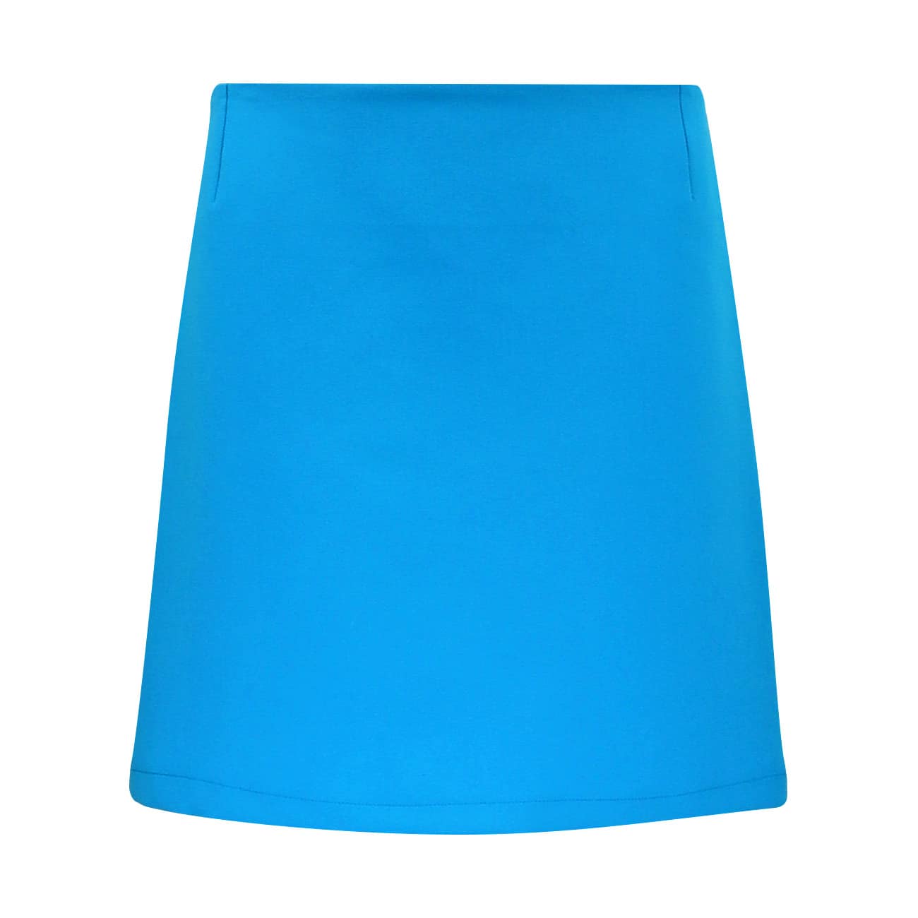 Blauwe rok van Senso, model Janelle cyan. Deze effen blauwe rok heeft een licht uitlopende pasvorm en sluit met een verborgen ritssluiting aan de zijkant. De rok heeft een normale taille en valt boven de knieen.
