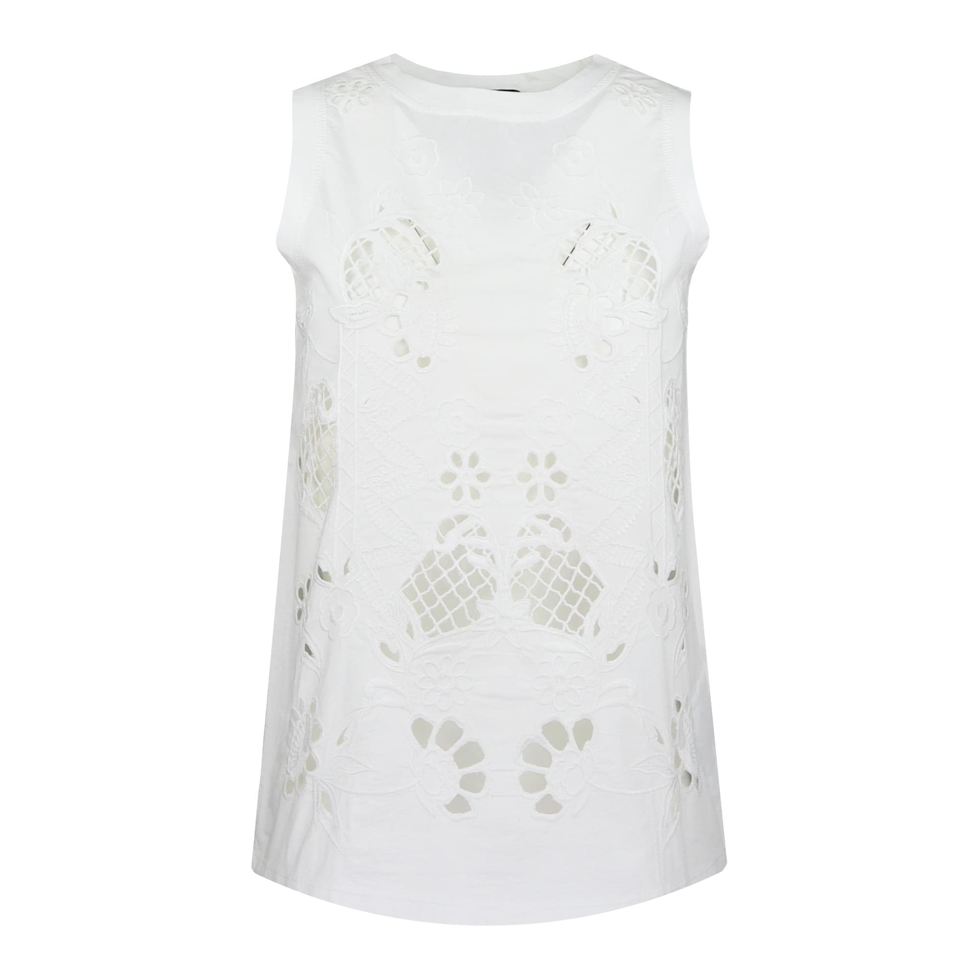 Witte top van Seventy. Deze broderie top is gemaakt van katoen, heeft een ronde hals en een losse, licht uitlopende pasvorm. De top is aan de voorzijde opengewerkt en aan de achterzijde effen wit.