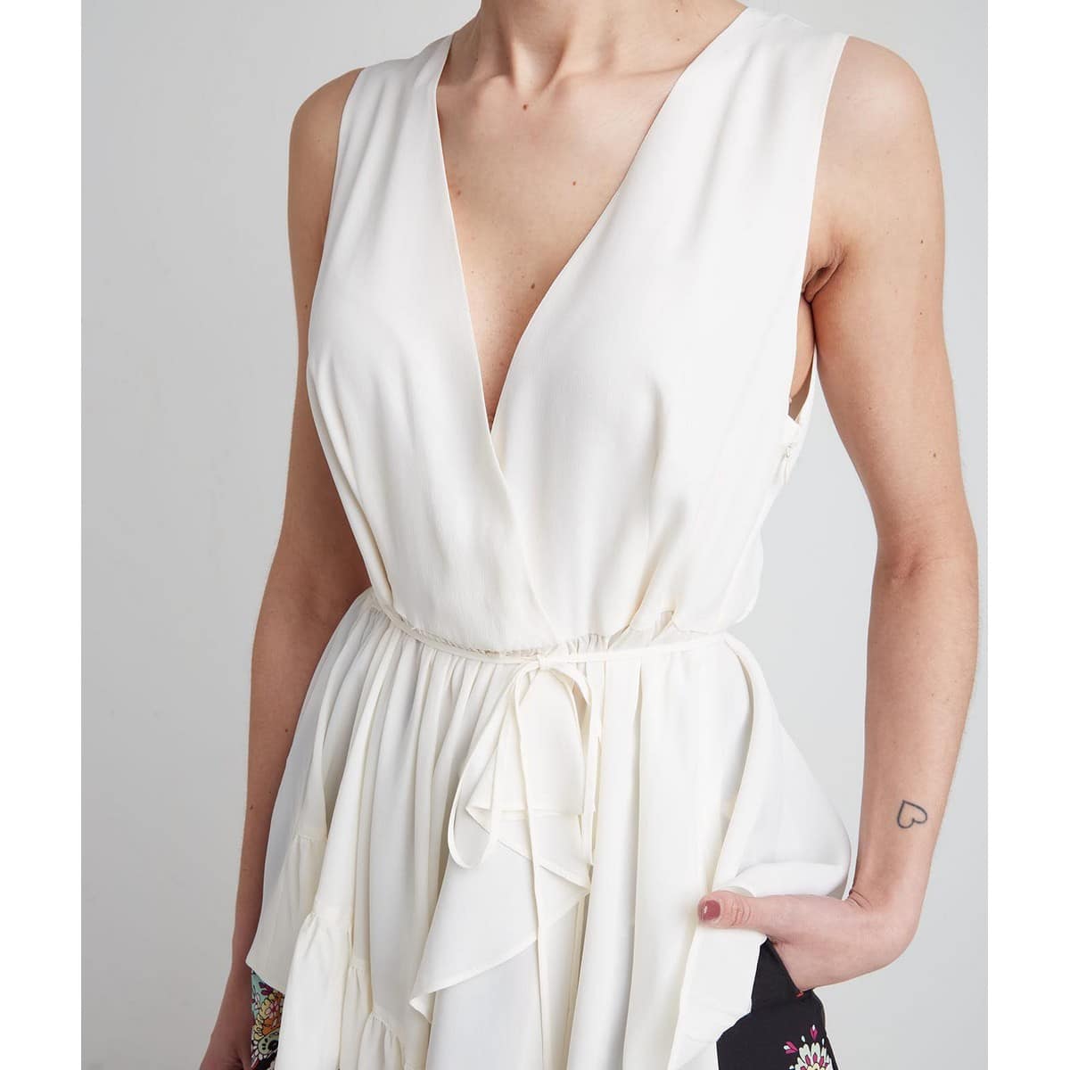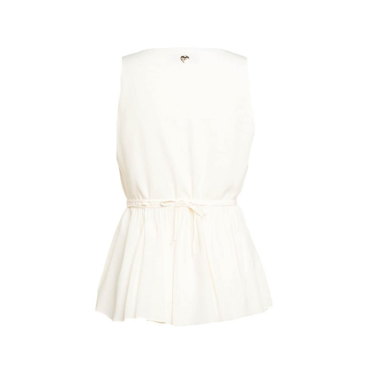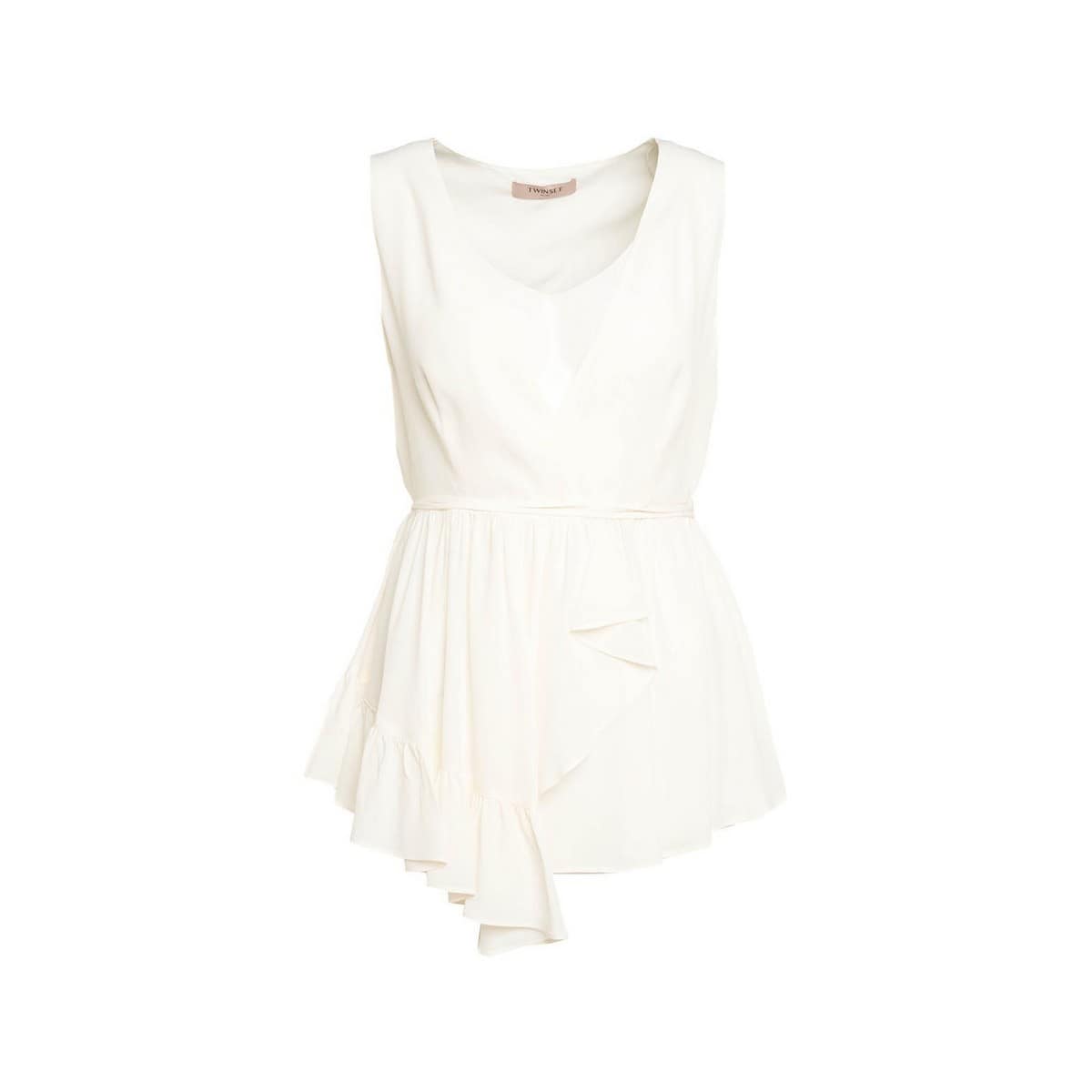 Losvallende overslag top van Twinset. Deze top is gemaakt van een zijde mix met een beetje stretch en sluit met een verborgen ritssluiting aan de zijkant. De mouwloze top heeft een overslag V-hals met daaronder elegante volants die geaccentueerd kunnen worden met een koordje.