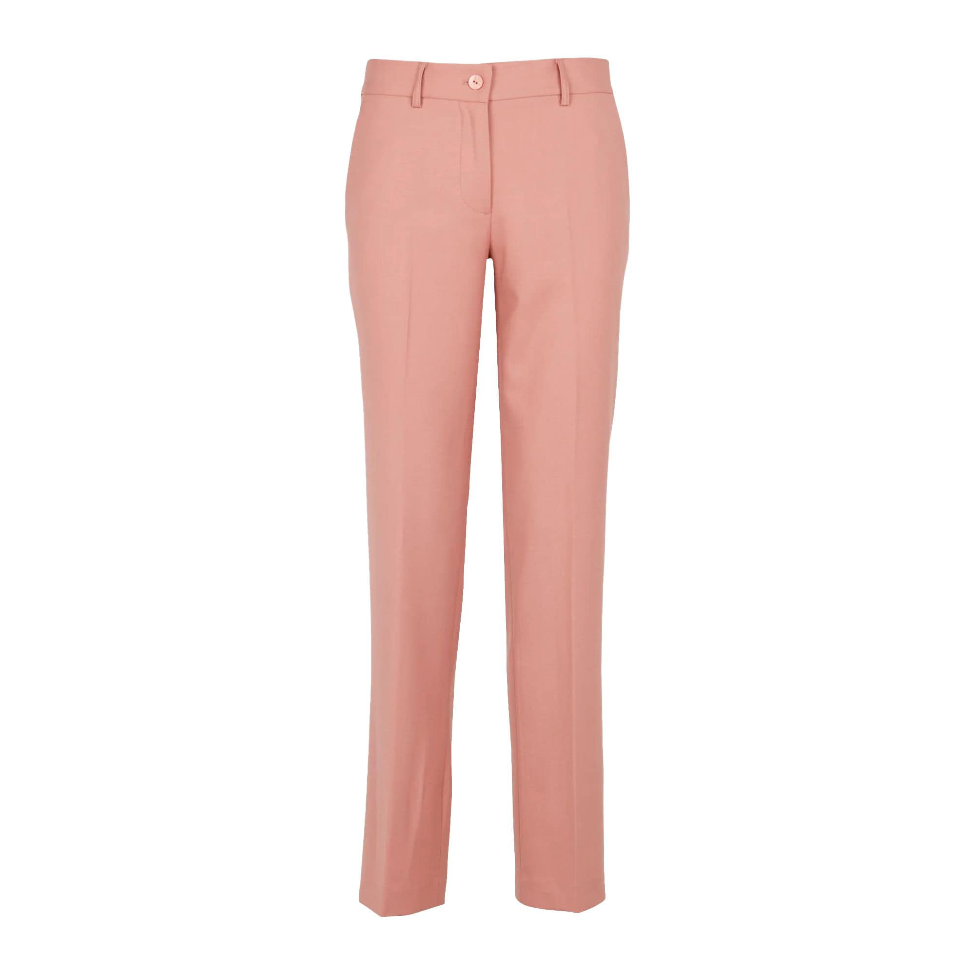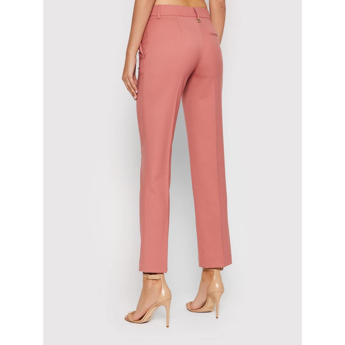 Roze pantalon van Twinset. Deze broek is gemaakt van een wol mix en heeft een rechte pasvorm met een normale taille. De pantalon sluit met een knoop- en ritssluiting en heeft aan de voorzijde twee steekzakken en aan de achterzijde een sier paspelzakje.