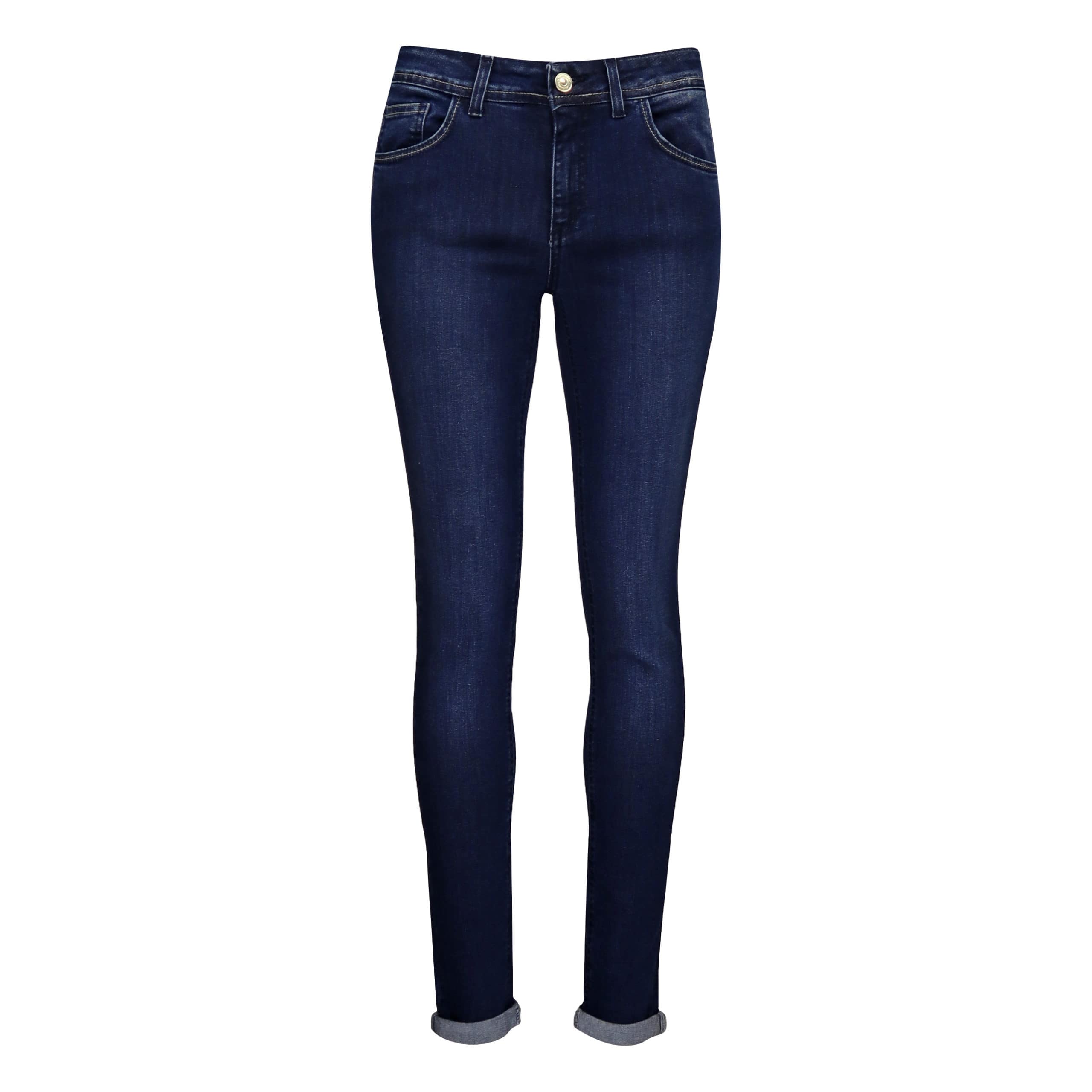 Slim fit jeans van Verysimple. Deze blauwe spijkerbroek heeft een hogere taille met toelopende. De jeans sluit met een knoop- en ritssluiting en heeft twee steekzakken en twee achterzakken.
