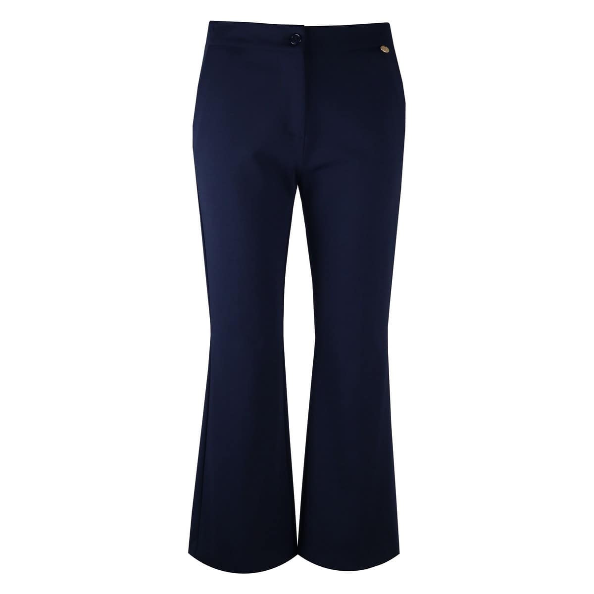 Klassieke pantalon van Verysimple. Deze donkerblauwe broek heeft een flared pasvorm. De pantalon sluit met een knoop- en ritssluiting en heeft twee steekzakken aan de voorzijde.