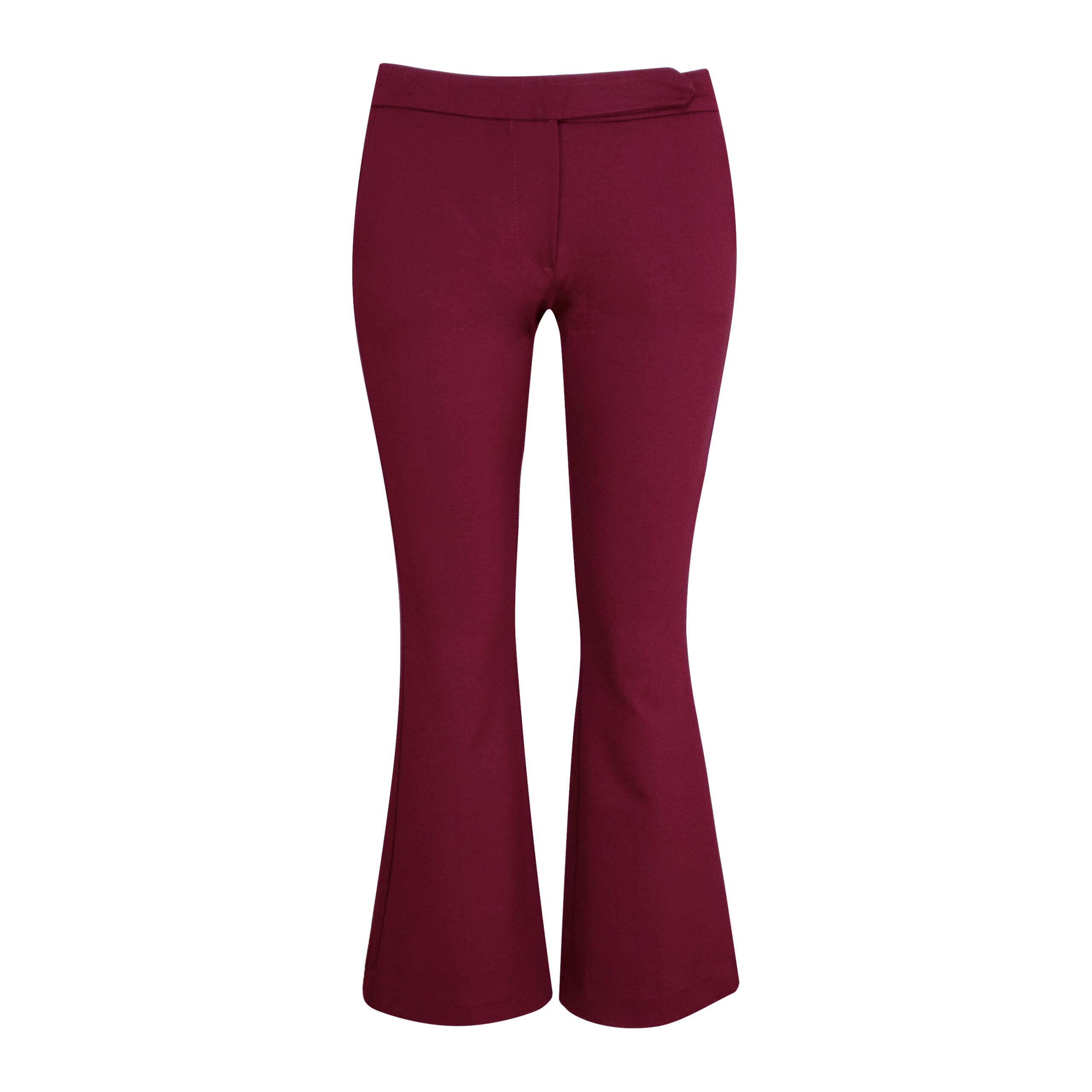 Bootcut pantalon van Verysimple. Deze broek is gemaakt van bordeaux rode stretch stof en heeft een normale taille met flared broekspijpen. De pantalon sluit met een haakje, knoop- en ritssluiting en heeft twee steekzakken aan de voorzijde.