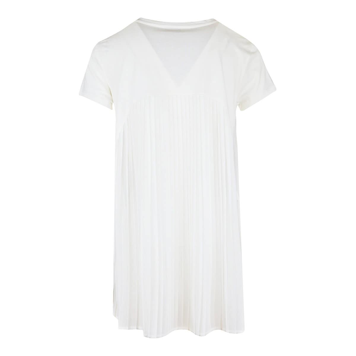 Off white t-shirt van Verysimple. Dit shirt heeft korte mouwen en een ronde hals. Aan de voorzijde staat er v/s in zwarte kralen. Aan de achterzijde is het shirt gemaakt van een losvallende dunne stof met plooien. Het shirt heeft een losse wijd uitlopende pasvorm.