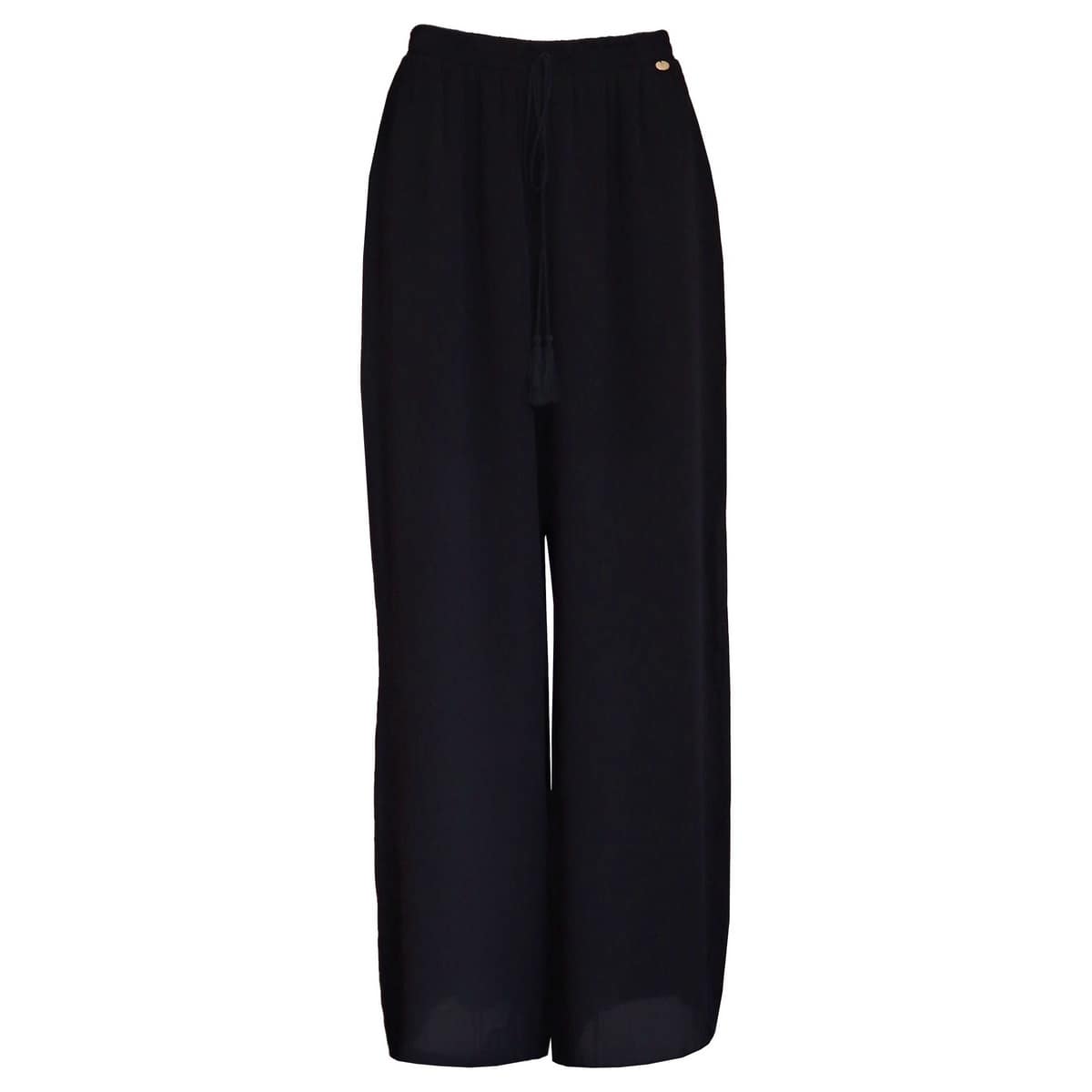 Relaxte pantalon van Verysimple. Deze broek heeft een elastische taille met een trekkoordje en een kwastje. Deze wijde pantalon is gemaakt van een lichte dunne stof en is gevoerd met een korte binnenbroek voor het draagcomfort.
